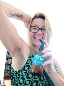 For someone (me) who doesn’t wear deodorant and who has hairy faery armpits (don’t you know faeries don’t have wax or shavers since they absolutely love their natural state), I sometimes get comments from my kids that I have an odour. It’s funny that, especially since I really like the smell of my BO. But they don’t! Well yesterday was my kid’s lucky day! Why? Well, a friend of mine Vanessa Pike-Russell passed on to me (mmm maybe she didn’t like my BO either haha!) a product that is just effin’ gorgeous. It smells fresh and tantalising. It’s a natural deodorant in a bottle! The one I’ve got is lemon myrtle & peppermint. here’s the link to check it out. Have fun with your arm pits